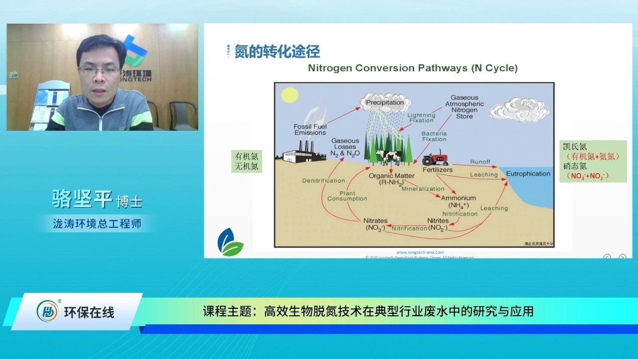 2020年12月23日14點(diǎn),由北京瀧濤環(huán)境科技有限公司總工程師駱堅(jiān)平博士帶來(lái)的“高效生物脫氮技術(shù)在典型行業(yè)廢水中的研究與應(yīng)用”線上課程如期開(kāi)播,吸引了超過(guò)2000名網(wǎng)友到課聽(tīng)講。