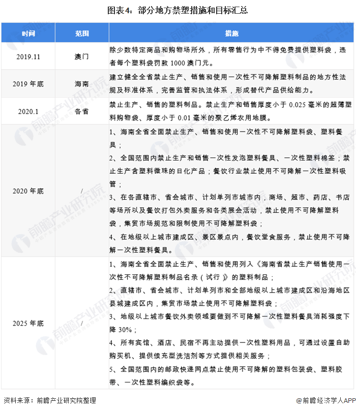 2020年1月國(guó)家發(fā)改委聯(lián)合生態(tài)環(huán)境部發(fā)布《關(guān)于進(jìn)一步加強(qiáng)塑料污染治理的意見(jiàn)》,重點(diǎn)針對(duì)不可降解塑料袋、一次性塑料餐具、賓館和酒店一次性塑料用品、快遞塑料包裝四個(gè)領(lǐng)域提出禁止、限制使用的要求和時(shí)間推進(jìn)節(jié)點(diǎn)。2020年7月,國(guó)家發(fā)改委、生態(tài)環(huán)保部等九部委聯(lián)合印發(fā)《關(guān)于扎實(shí)推進(jìn)塑料污染治理工作的通知》明確指出,外賣與電商、快遞等新興領(lǐng)域均為塑料污染問(wèn)題突出領(lǐng)域,2021年1月1日起,將禁用不可降解的塑料袋、塑料餐具及一次性塑料吸管等。除國(guó)家政府部門以外,各地也相繼出臺(tái)禁塑令時(shí)間表,從“限塑”到“禁塑“,政策有望推動(dòng)可降解塑料的滲透節(jié)奏加快。