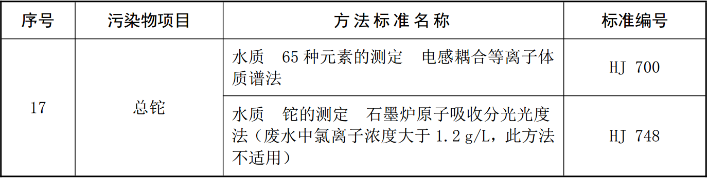 五、“表 7 水污染物濃度測定方法標準”中的標準編號不再保留年號,并增加以下內(nèi)容: