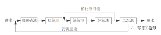 A2/O這是一個很成熟的脫氮除磷工藝,后續(xù)介紹的其他脫氮處理工藝基本上是為克服A2/O工藝的缺點而進行改動的,從而在節(jié)能的基礎之上滿足出水要求。