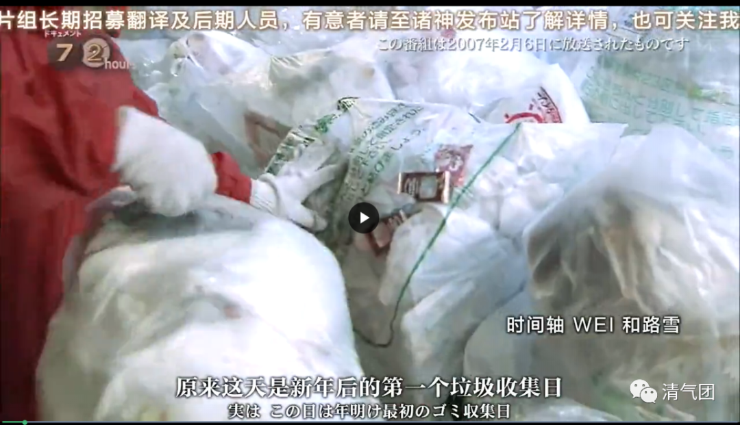 查閱網(wǎng)易公開課,不經(jīng)意發(fā)現(xiàn)了日本NHK電視臺,于2007年拍攝的一個紀錄片,紀錄片跟拍了東京世田谷區(qū)某個環(huán)衛(wèi)清潔公司,如何在公司管理的地區(qū),開展垃圾收運和垃圾分類工作等情況,拍攝時長跨度三天,非常詳實的記錄了日本環(huán)衛(wèi)工人開展垃圾分類的點點滴滴和各種細節(jié)。
