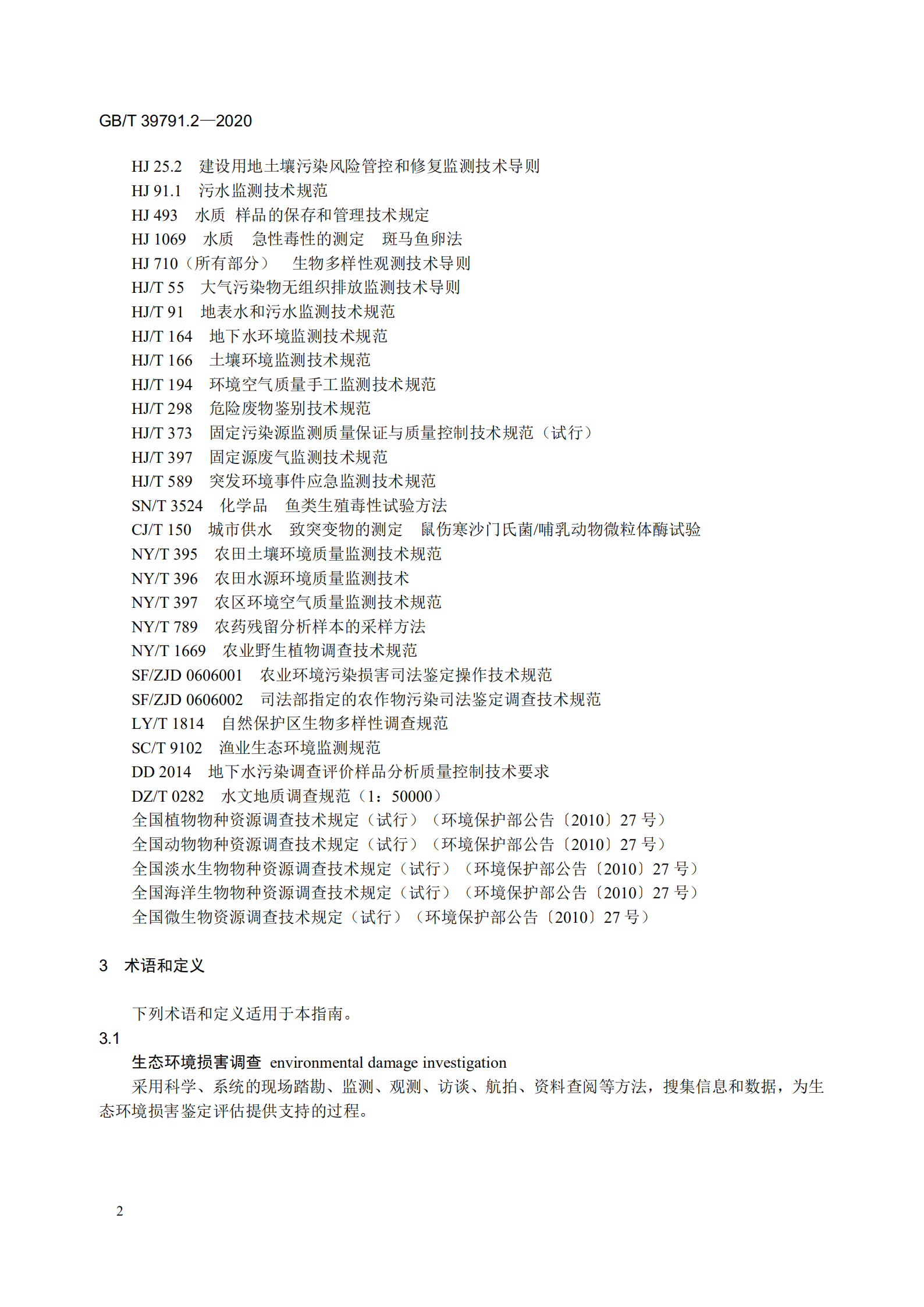 二、《生態(tài)環(huán)境損害鑒定評估技術(shù)指南 總綱和關(guān)鍵環(huán)節(jié) 第2部分:損害調(diào)查》(GB/T 39791.2-2020)