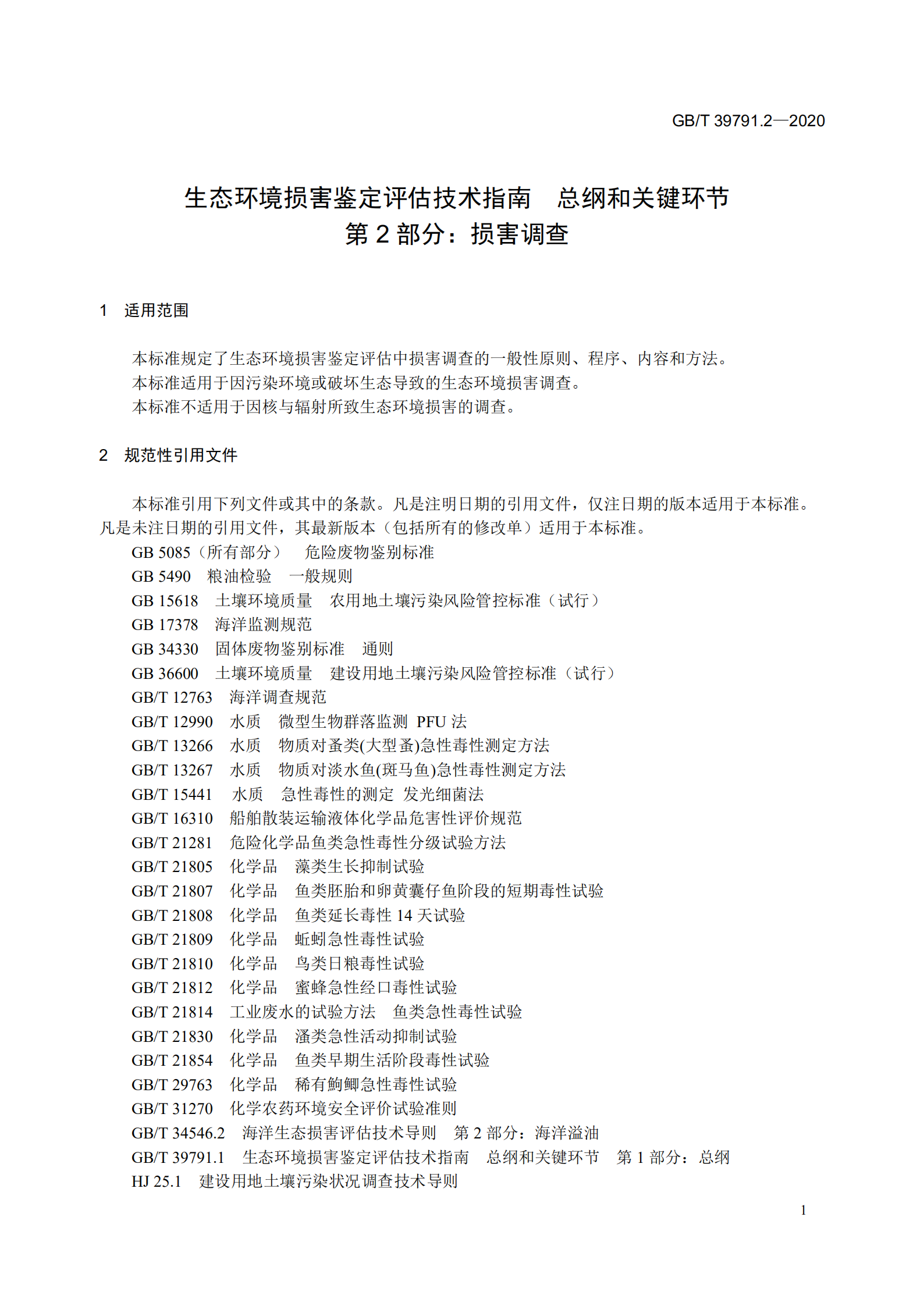 一、《生態(tài)環(huán)境損害鑒定評估技術(shù)指南 總綱和關(guān)鍵環(huán)節(jié) 第1部分:總綱》(GB/T 39791.1-2020)