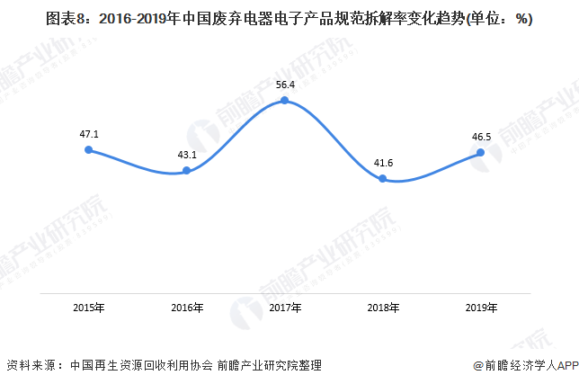 同時(shí),從部分細(xì)分市場(chǎng)的利用情況來(lái)看,在廢金屬市場(chǎng)中,再生銅鋁鉛鋅產(chǎn)量不斷增長(zhǎng),2020年約為1450萬(wàn)噸;在廢棄電器電子市場(chǎng),規(guī)范地拆解流程是其得以有效處置加工的前提,但目前的規(guī)范拆解率還有待提升;