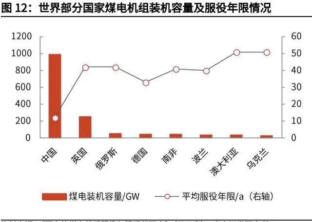 煤電資產(chǎn)擱淺的問題,表明了轉(zhuǎn)型需經(jīng)歷陣痛。一方面,從能源結(jié)構(gòu)和自身稟賦 來看,我國的能源消耗以煤為主,煤電發(fā)電量在 2019 年占總發(fā)電量的 65%,遠 超發(fā)達國家;另一方面,我國煤電機組的平均服役年限僅 12 年,而發(fā)達國家普 遍達到 40 年以上。更快的碳排放量下降斜率,意味著將會有大量的未達到退役 年限的煤電資產(chǎn)提前“擱淺”。