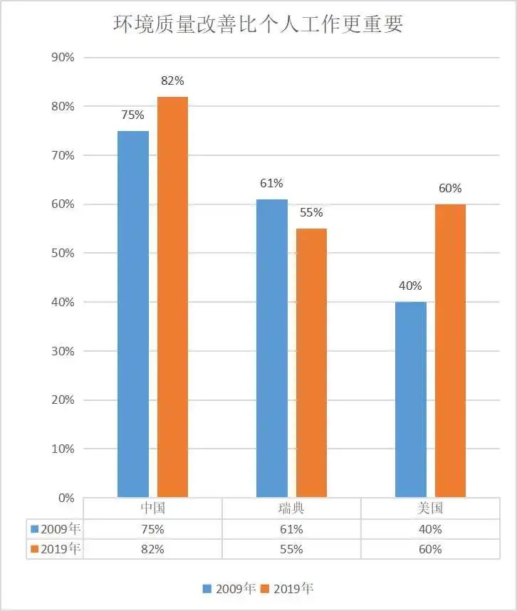 這張圖表很讓人振奮,這顯示中國民眾的環(huán)境意識覺悟程度,明顯高于美國和瑞典。