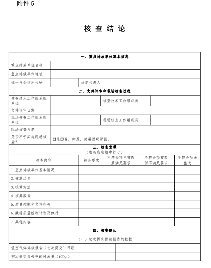 技術工作組應根據(jù)如下要求出具《核查結論》(見附件5)并提交省級生態(tài)環(huán)境主管部門。