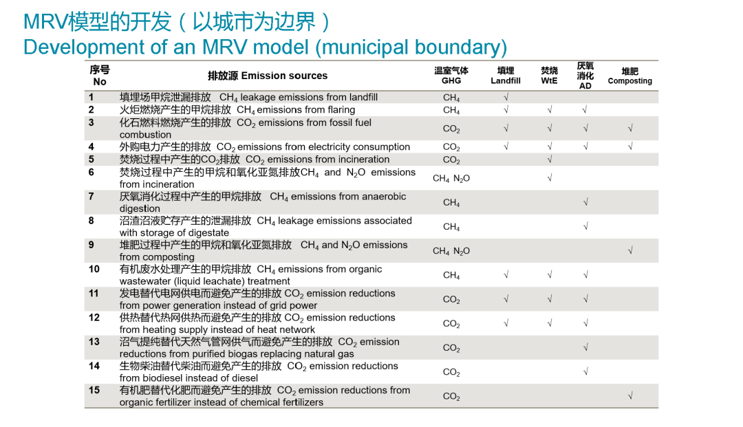 另外還有一部分很重要的內(nèi)容,我們會(huì)對(duì)這五個(gè)城市垃圾行業(yè)的溫室氣體排放去進(jìn)行分析。首先我們建立一個(gè)基于城市的方法學(xué),在這個(gè)方法學(xué)的基礎(chǔ)上,我們會(huì)有一個(gè)對(duì)五個(gè)城市的基線研究,最終減排量也是會(huì)每年度的去做定期的核算。