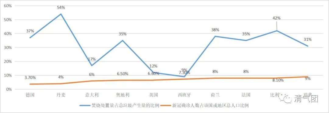 此外,從整個西歐的數(shù)據(jù)看來,也呈現(xiàn)垃圾焚燒比例高的國家,新冠疫情人口發(fā)病率相對較低的狀況。