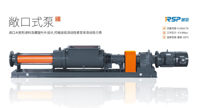 第二款黃泵敞口式單螺桿泵進(jìn)口腔體為矩形進(jìn)料斗設(shè)計(jì),內(nèi)裝有進(jìn)料螺旋葉片,可輸送高粘度、流動(dòng)性差或非流動(dòng)性介質(zhì),如脫水污泥等,工作壓力2.4Mpa,流量50m³/h。產(chǎn)品特點(diǎn)為以下幾點(diǎn)。