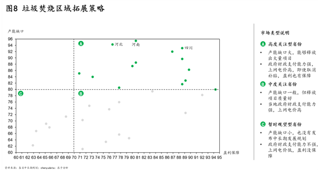 針對(duì)以上兩個(gè)趨勢(shì),我們建議中游企業(yè)要順勢(shì)調(diào)整投資拓展策略,優(yōu)化人員布局,下沉投資渠道,重點(diǎn)關(guān)注河南、河北、四川等產(chǎn)能缺口大、盈利保障性高的省份中的四五線城市(見圖8)。