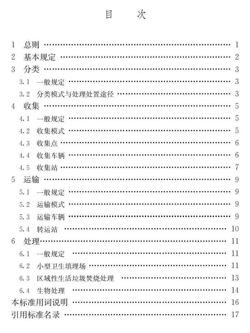 本標(biāo)準(zhǔn)主要技術(shù)內(nèi)容是:1.總則;2.基本規(guī)定;3.分類; 4.收集;5.運(yùn)輸;6.處理。