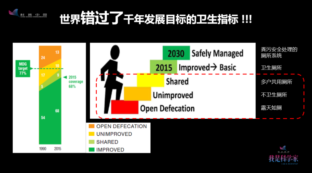 使用不衛(wèi)生廁所的人口更多,有的統(tǒng)計數(shù)據(jù)顯示是20多億。這個數(shù)據(jù)也在動態(tài)變化。