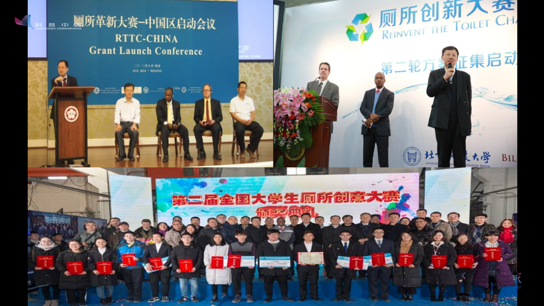到2013年的時候,我們和基金會合作廁所的創(chuàng)新大賽。左上角這個圖是在中國對外友協(xié)的禮堂里面,在中國對外友協(xié)的支持下,我們在那邊召開了啟動會。