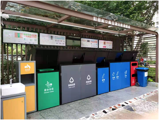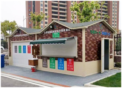 3、投放點一般由投放間、管理間和貯存間組成(可分可合),投放間面積不宜小于15㎡,管理間面積不宜小于10㎡,貯存間面積根據(jù)需要設置。受條件限制的小區(qū)至少應有一個投放點設置管理間和貯存間。4、投放點應設置洗水池、地面排水溝,并在醒目位置張貼投放時間、分類要求和宣傳圖文等。5、每個小區(qū)至少應有一個投放點設置可回收物和有害垃圾的收集容器,兩網(wǎng)融合回收服務站可替代可回收物收集容器。五、投放點管理
