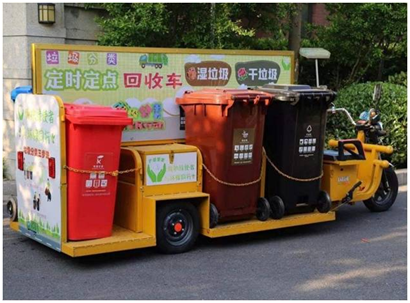 2、有條件的小區(qū)可設立集“投放、貯存、收集、管理”于一體的“一站式”投放點,受條件限制的小區(qū)也可因地制宜設立“移動式”或其他形式的投放點。(移動式投放點形式實例)