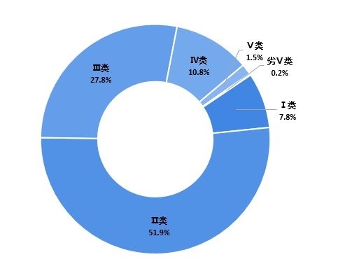 生態(tài)環(huán)境部 圖表4:2020年重點(diǎn)監(jiān)測(cè)胡泊(水庫(kù))水質(zhì)分布(單位:%)