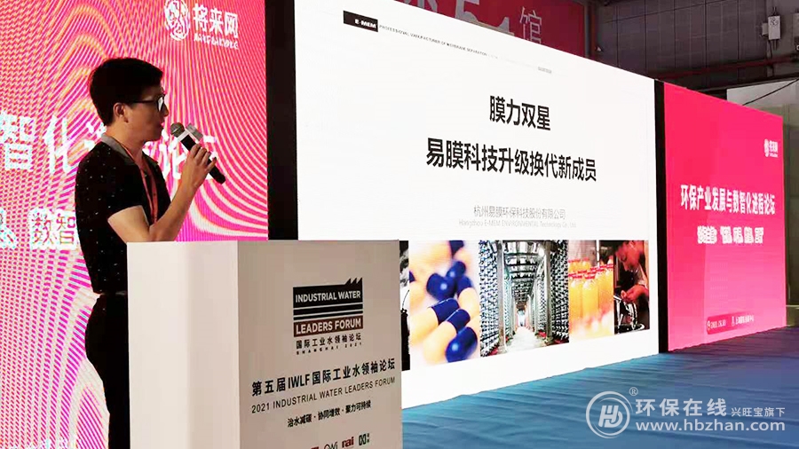 有展,也有會。本屆展會同期舉辦的“2021環(huán)保產(chǎn)業(yè)發(fā)展與數(shù)智化進(jìn)程論壇”上,易膜環(huán)保高級工程師王銘應(yīng)邀出席,并發(fā)表題為《膜力雙星 易膜科技升級換代新成員》的專題演講,對公司的發(fā)展情況、核心產(chǎn)品、產(chǎn)品特點及應(yīng)用領(lǐng)域等多個方面作了詳細(xì)匯報。