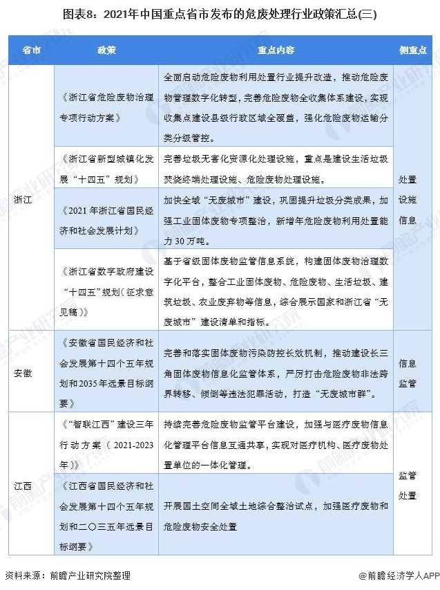 重點(diǎn)省市危廢處理最新推動(dòng)政策匯總