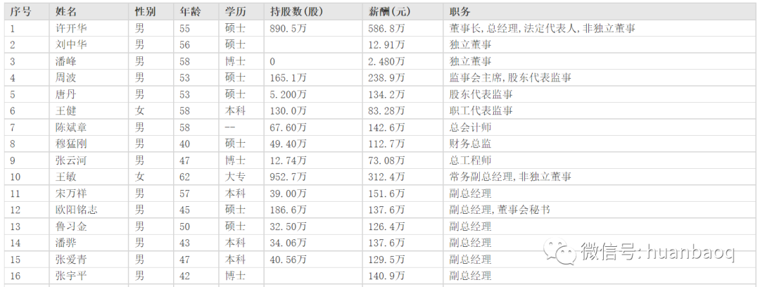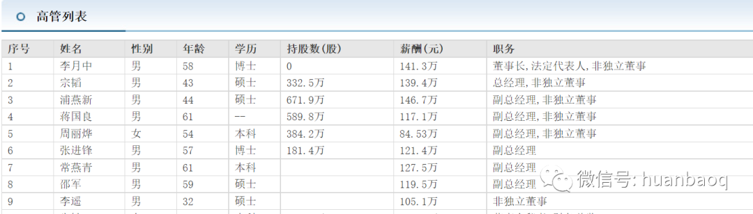 相對(duì)于董事長(zhǎng)和總經(jīng)理,副總經(jīng)理相當(dāng)于公司三把手,數(shù)量也更多。縱觀每家環(huán)保上市企業(yè),副總經(jīng)理的數(shù)量雖然不盡相同,但少的也有2-3個(gè),多的則有5-6個(gè)。為了方便統(tǒng)計(jì)和比較,我們僅從各家企業(yè)中挑選報(bào)酬相對(duì)較高的一位作為代表。在我們統(tǒng)計(jì)的79位上市環(huán)企副總經(jīng)理名單中,年薪百萬以上的有25位,約占32%;年薪50萬元-100萬元之間的有41位,占比52%,約占半數(shù);年薪不足50萬元的則要13位,約占16%(如圖七所示)。這其中,盈峰環(huán)境副總裁陳培亮遙遙領(lǐng)先,年收入625萬元;排名第二的還是格林美,其副總王敏去年薪酬312萬元,她的另外一個(gè)身份則是格林美董事長(zhǎng)許開華的妻子。在圖7“副總經(jīng)理薪酬TOP20榜單”中,排名靠前的企業(yè)絕大多數(shù)也都是業(yè)績(jī)表現(xiàn)好,坐落于北上廣深的大型環(huán)保上市企業(yè),如中持股份、格林美、首創(chuàng)股份、綠色動(dòng)力、清新環(huán)境等。圖七:上市環(huán)企副總經(jīng)理薪酬TOP20榜單這些企業(yè)的高管不僅百萬年薪,很多還都大量持有公司股票,從幾十萬股到幾百萬股不等。以中持股份原副總朱向東為例(最近剛剛接替邵凱成為公司總經(jīng)理),按照6月10日中持股份9.93元/股的收盤價(jià),他持有132萬股計(jì)算,他目前已是擁有1311萬元的身價(jià)了,這還不包括每年155.4萬元的年薪(如圖八所示)。圖八:中持股份高管團(tuán)隊(duì)收入(數(shù)據(jù)/東方財(cái)富網(wǎng))除了中持,格林美的七個(gè)副總經(jīng)理也幾乎清一色年入百萬,并大量持有公司股票(如圖九所示)。圖九:格林美高管團(tuán)隊(duì)收入(數(shù)據(jù)/東方財(cái)富網(wǎng))清新環(huán)境也不錯(cuò),總裁和四個(gè)副總的年薪,都比董事長(zhǎng)鄒艾艾要高(如圖十所示)。圖十:清新環(huán)境高管團(tuán)隊(duì)收入(數(shù)據(jù)/東方財(cái)富網(wǎng))還有首創(chuàng)股份和綠色動(dòng)力,高管團(tuán)隊(duì)年薪100萬-300萬不等,待遇也要高于大多數(shù)上市環(huán)企(如圖十一、圖十二所示)。圖十一:首創(chuàng)股份高管團(tuán)隊(duì)收入(數(shù)據(jù)/東方財(cái)富網(wǎng))圖十二:綠色動(dòng)力高管團(tuán)隊(duì)收入(數(shù)據(jù)/東方財(cái)富網(wǎng))在眾多環(huán)保企業(yè)中,有一家企業(yè)顯得比較“特別”,它既不坐落于北上廣深等一線大都市,去年的營(yíng)收也不是環(huán)保行業(yè)排名前20強(qiáng),但對(duì)高管團(tuán)隊(duì)卻非常“舍得”,又是年薪百萬,又是持股百萬,這家企業(yè)就是崛起于常州的維爾利集團(tuán)(如圖十三所示)。圖十三:維爾利集團(tuán)高管團(tuán)隊(duì)收入(數(shù)據(jù)/東方財(cái)富網(wǎng))從圖中可以看出,維爾利高管的年薪基本都在“百萬級(jí)”左右,很多人持股也都在幾百萬股以上。這樣的利益分配制度,維爾利的高管不努力,公司的業(yè)績(jī)不優(yōu)秀都太不可能了。當(dāng)然,高收入、高待遇也不只是少數(shù)環(huán)保企業(yè)的專利,絕大多數(shù)環(huán)保上市企業(yè)的高管團(tuán)隊(duì),包括總經(jīng)理和副總經(jīng)理級(jí)別的,年薪都位于50萬元-100萬元之間,可能還會(huì)有股票、分紅等隱性福利。眾多環(huán)保企業(yè)中,還有2家企業(yè)比較“另類”,那就是中國(guó)天楹和城發(fā)環(huán)境。在圖十四“副總經(jīng)理年薪收入后10名榜單”中,可以看到這兩家企業(yè)的副總年薪偏少。圖十四:副總經(jīng)理年薪收入后10名的名單中國(guó)天楹,創(chuàng)始人是嚴(yán)圣軍、茅洪菊夫婦,除總裁曹徳標(biāo)年薪36萬元外,其余副總裁一律年薪25萬元,月工資2.1萬(如圖十五所示)。圖十五:中國(guó)天楹高管團(tuán)隊(duì)收入(數(shù)據(jù)/東方財(cái)富網(wǎng))城發(fā)環(huán)境,剛剛花了12.6億元并購(gòu)啟迪環(huán)境資產(chǎn),除總經(jīng)理年入100萬元以外,其余三位副總年薪都低至2.4萬元,月工資只有2000元,著實(shí)令人費(fèi)解(如圖十六所示)。圖十六:城發(fā)環(huán)境高管團(tuán)隊(duì)收入(數(shù)據(jù)/東方財(cái)富網(wǎng))這里面的原因,外部人可能很難知道,或許是有其特殊的隱情吧。全部看下來,大家對(duì)于環(huán)保行業(yè)高管的收入應(yīng)該有一個(gè)大概的了解了。