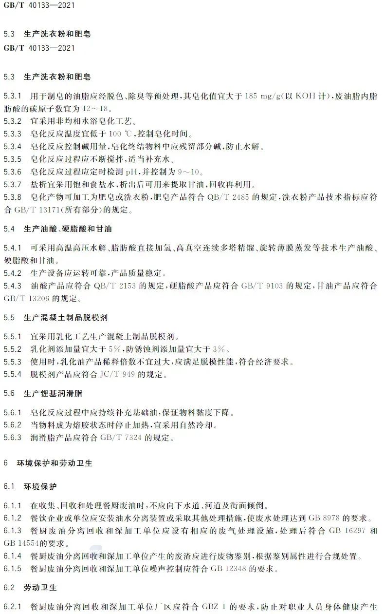 該國(guó)標(biāo)對(duì)餐廚廢油的分離回收技術(shù)、深加工技術(shù)與產(chǎn)品及環(huán)境保護(hù)和勞動(dòng)衛(wèi)生做出規(guī)范要求,是我國(guó)第一項(xiàng)餐廚廢油回收和深加工技術(shù)的國(guó)家標(biāo)準(zhǔn),改觀了餐廚廢油資源回收和深加工處于有技術(shù)、無(wú)標(biāo)準(zhǔn)的狀態(tài),對(duì)于餐廚廢油資源回收和深加工及產(chǎn)品具有深遠(yuǎn)的指導(dǎo)性意義。