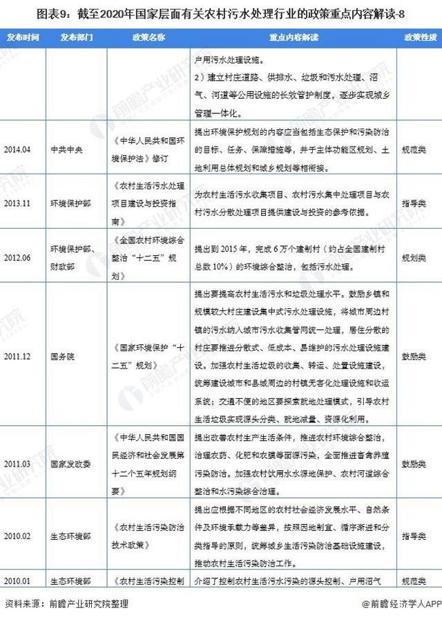 ——國家層面農(nóng)村污水處理行業(yè)政策匯總