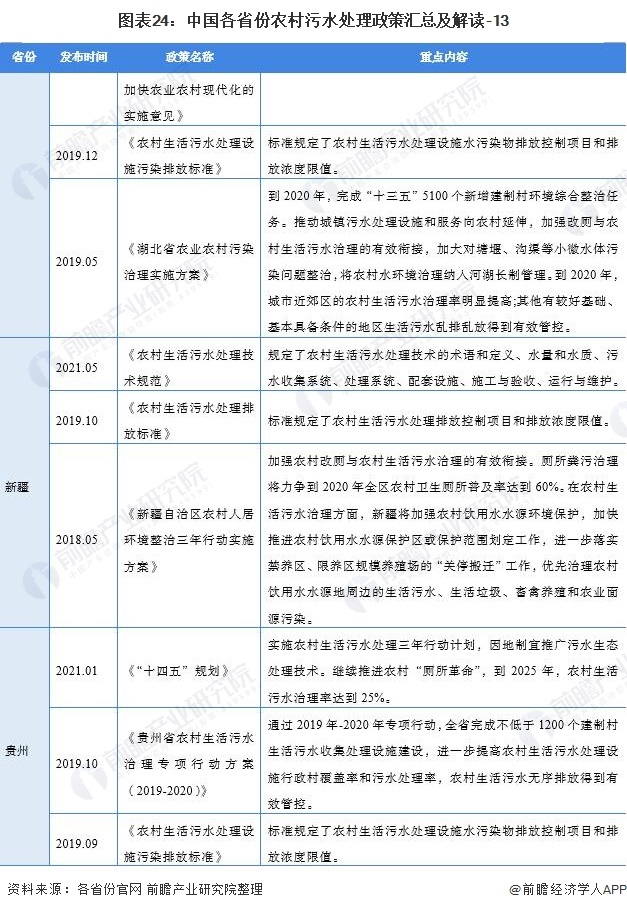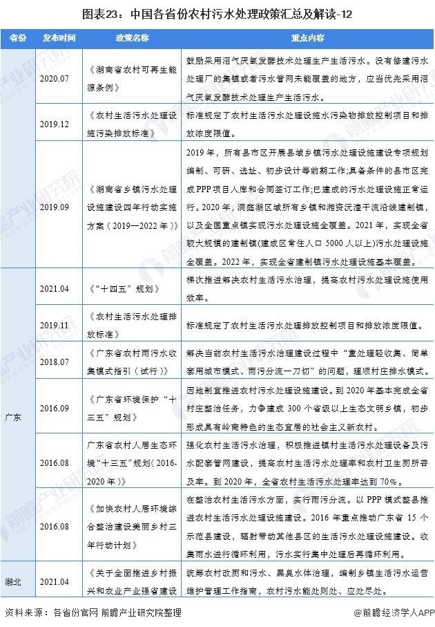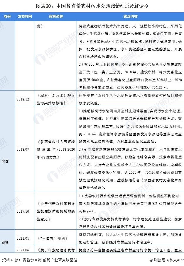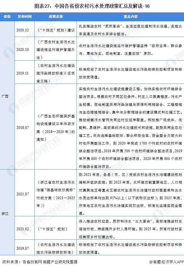 ——31個(gè)省(市、自治區(qū))農(nóng)村污水處理行業(yè)政策匯總