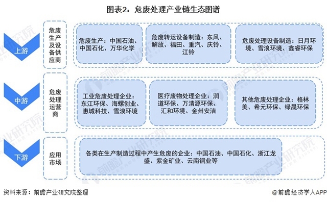 除危險(xiǎn)廢物生產(chǎn)外,危廢處理行業(yè)上游還包括各類危廢轉(zhuǎn)運(yùn)設(shè)備以及處理設(shè)備制造行業(yè),為危廢處理提供基礎(chǔ)條件,轉(zhuǎn)運(yùn)設(shè)備代表企業(yè)有東風(fēng)、解放、福田、重汽、慶鈴、江鈴等;危廢處理設(shè)備制造代表企業(yè)有日月環(huán)境、雪浪環(huán)境、鑫睿環(huán)保等。