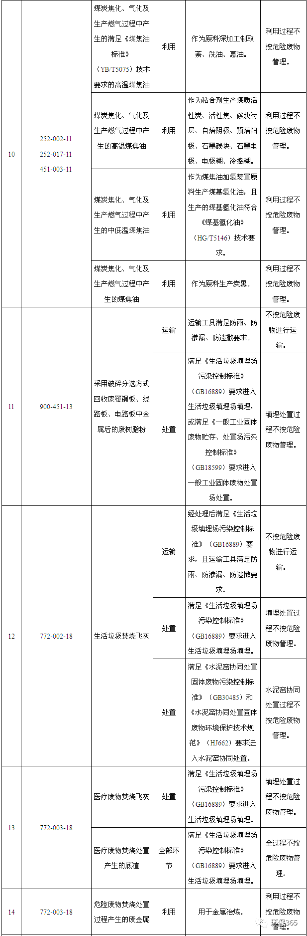 如:生活垃圾焚燒飛灰滿足《生活垃圾填埋場(chǎng)污染控制標(biāo)準(zhǔn)》(GB16889-2008)中6.3條要求且進(jìn)入生活垃圾填埋場(chǎng)填埋,填埋過(guò)程可不按危險(xiǎn)廢物管理;如果不能滿足《生活垃圾填埋場(chǎng)污染控制標(biāo)準(zhǔn)》(GB16889-2008)中6.3條要求或不進(jìn)入生活垃圾填埋場(chǎng),則處置過(guò)程仍然需要按照危險(xiǎn)廢物管理。