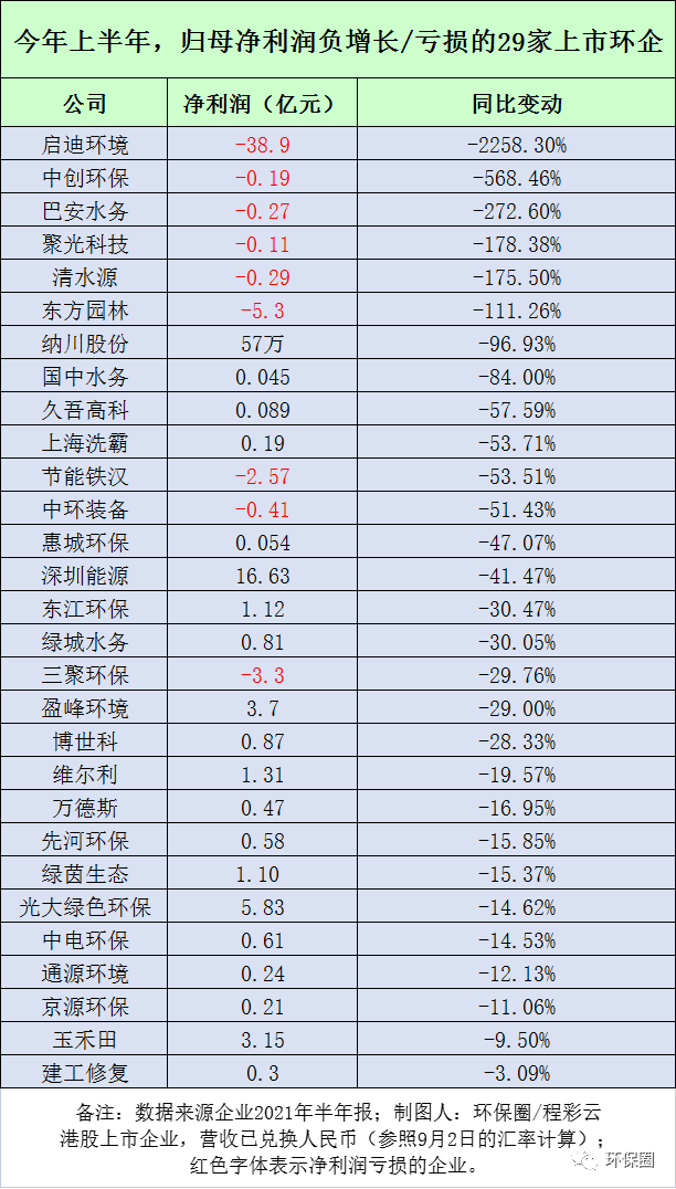 看完上半年?duì)I收增長(zhǎng)情況,我們重點(diǎn)分析一下凈利潤(rùn)。先說(shuō)結(jié)論,今年上半年,111家環(huán)保上市企業(yè)中,歸屬于上市公司股東的凈利潤(rùn)好于預(yù)期,遠(yuǎn)高于去年中報(bào)和年報(bào)。具體來(lái)看,111家上市環(huán)企,歸母凈利潤(rùn)實(shí)現(xiàn)增長(zhǎng)有83家,約占75%。也就是說(shuō),今年上半年度,只有25%企業(yè),約29家企業(yè)表現(xiàn)“不盡如意”,歸母凈利潤(rùn)出現(xiàn)下滑/虧損情況,較去年中報(bào)的“近半數(shù)下滑”,減少了約25%。也有人說(shuō),今年中報(bào)不能與去年相比,是因?yàn)槿ツ晔艿揭咔橛绊懀厥鈺r(shí)期不作數(shù)。不過(guò),今年中報(bào)的數(shù)據(jù),與去年年報(bào)的40%下滑率相比,同樣也減少了15%,再次說(shuō)明了后疫情時(shí)代,除了個(gè)別企業(yè)環(huán)保股因?yàn)閭€(gè)別原因未能重振往日雄風(fēng)(如圖八所示),絕大多數(shù)企業(yè)則已經(jīng)通過(guò)出售股權(quán)、賣項(xiàng)目、傍身央企和國(guó)資,實(shí)現(xiàn)了逆風(fēng)翻盤。圖八:今年上半年,歸母凈利潤(rùn)實(shí)現(xiàn)負(fù)增長(zhǎng)/虧損的29家上市環(huán)企▼