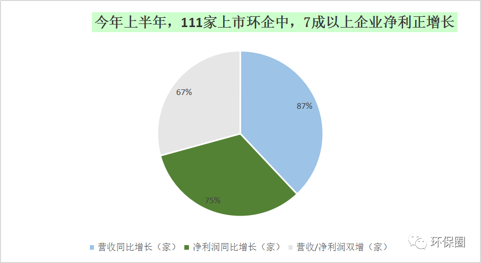 圖二:今年上半年,111家上市環(huán)企中,70%以上企業(yè)凈利潤(rùn)正增長(zhǎng)▼