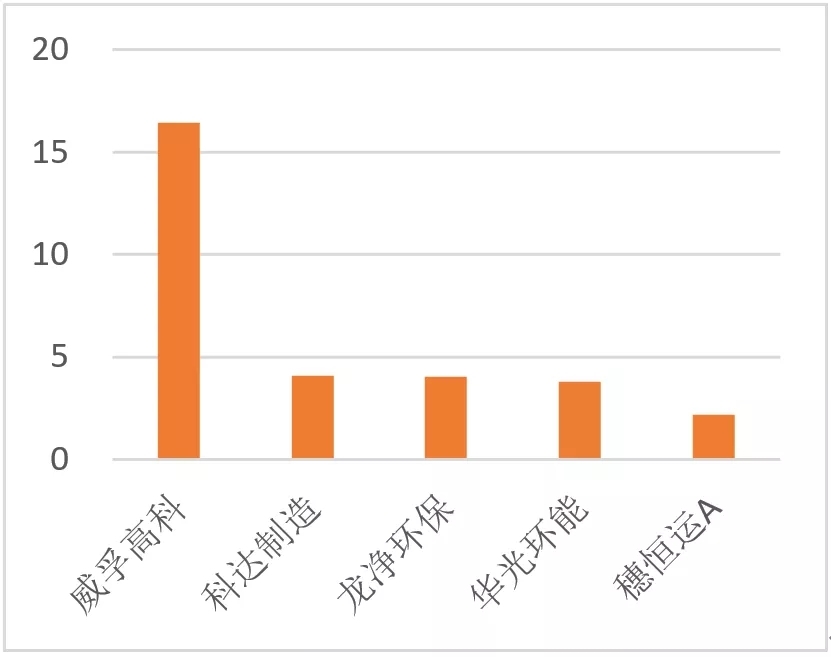 上半年環(huán)境修復(fù)領(lǐng)域凈利潤(rùn)TOP5(單位:億元)