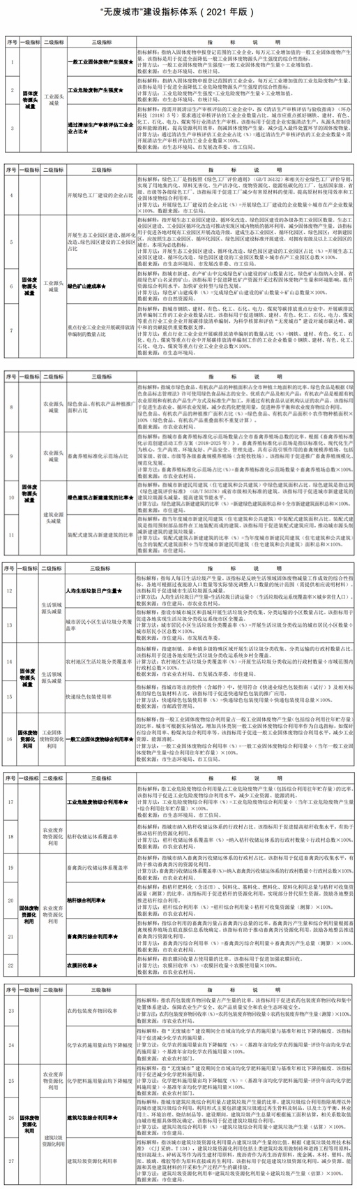“無廢城市”建設(shè)指標體系(2021 年版)