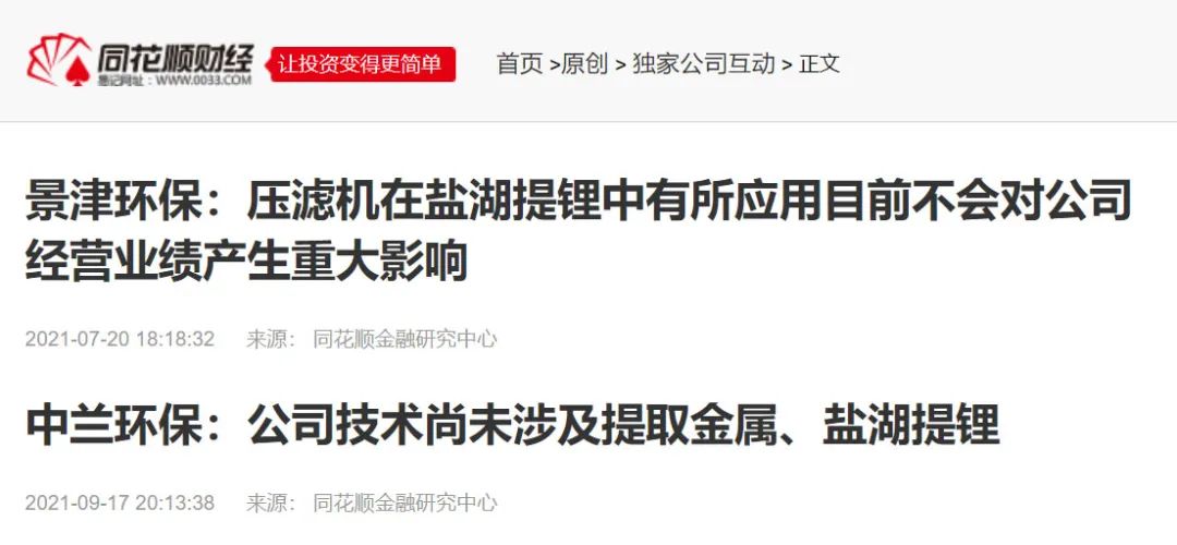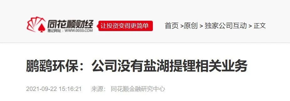 4、鵬鷂環(huán)保:公司沒有鹽湖提鋰相關(guān)業(yè)務(wù),同花順財經(jīng),2021-09-22