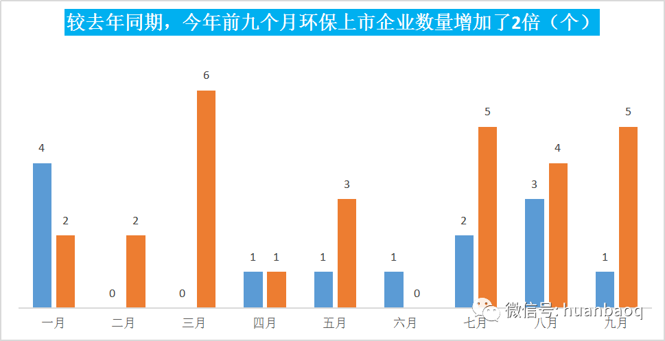 ▼圖二:今年前9個(gè)月環(huán)保企業(yè)掛牌數(shù)量比去年增加了2倍
