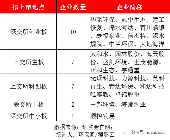 僅剛剛過去的第三季度,就有海螺創(chuàng)業(yè)、云南水務(wù)、正和生態(tài)、宇通重工、深水規(guī)院、中蘭環(huán)保、大地海洋、和達(dá)科技、唯賽勃等14家傳來擬掛牌分拆上市的消息,這數(shù)量已是去年全年掛牌上市數(shù)量的總和。3個(gè)月累計(jì)14家企業(yè)登陸資本市場,也就是說,基本上不到一周,就會有一家環(huán)保企業(yè)傳來喜訊,走紅毯,敲終上市。“本以為受年初IPO全面審核趨嚴(yán)的信號,今年環(huán)保產(chǎn)業(yè)IPO熱潮會降溫,沒想到不降反增。也沒有像其他行業(yè)因?yàn)楸O(jiān)管部門突擊檢查,紛紛陷入撤回材料終止審核的窘態(tài)?!蹦抄h(huán)保投行人士表示。《第一財(cái)經(jīng)》曾經(jīng)做過統(tǒng)計(jì),僅在今年3月的前18天,就有8家科創(chuàng)板、12家創(chuàng)業(yè)板企業(yè)終止審核。今年2月份以來,已有逾50家IPO企業(yè)因撤回材料而終止審核,其中有16家是因?yàn)槌橹鞋F(xiàn)場檢查而撤回材料。反觀常常被資本忽視的環(huán)保行業(yè),卻是“真金不怕火煉”,在年初政策風(fēng)聲較緊的3月,迎來了掛牌上市的高潮,當(dāng)月共有園林股份、順控發(fā)展、海天股份、建工修復(fù)、深水海納、元琛科技等6家企業(yè)敲鐘上市,掛牌數(shù)量比今年任何一個(gè)月都要多,甚至有望創(chuàng)下年度IPO數(shù)量最多的月份。相比股市上流行的各種“XX茅”,或許“環(huán)保茅”才是真正的王者。同時(shí),我們還欣喜地看到,去年下半年陸續(xù)IPO過會的同興環(huán)保、華騏環(huán)保、百川暢銀環(huán)保、太和水、建工環(huán)境、深水海納、海天股份、元琛環(huán)保、盛劍環(huán)境、青達(dá)環(huán)保,中蘭環(huán)保等,這11家環(huán)保上市都在今年上半年成功掛牌上市,正式邁入資本市場。不過值得一提的是,同樣去年下半年IPO過會的華新綠源環(huán)保就沒有那么順利了,直到現(xiàn)在也遲遲沒有敲鐘上市的消息。創(chuàng)業(yè)板/科創(chuàng)板成IPO主戰(zhàn)場