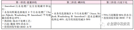 NEWs發(fā)展的終極目標(biāo)是在同一污水處理廠內(nèi)實(shí)現(xiàn)營(yíng)養(yǎng)物、能源和水三位一體生產(chǎn)。Vallei & Eem 水務(wù)局計(jì)劃以Amersfoort污水處理廠為案例,探求新技術(shù)與新工藝,以使污水廠至少能達(dá)到能量自給自足的水平。具體目標(biāo)是2014年Amersfoort污水廠將以能量工廠方式運(yùn)行,除能量回收外,營(yíng)養(yǎng)物(N、P)也予以回收利用。同時(shí)Vallei&Eem水務(wù)局與荷蘭應(yīng)用水研究基金會(huì)(STOWA)已開始執(zhí)行Omzet-Amersfoort合作計(jì)劃(2011——2016),這一計(jì)劃主要在Amersfoort污水廠中實(shí)施,將其轉(zhuǎn)化為能源與資源回收工廠。其預(yù)期結(jié)果見下表。