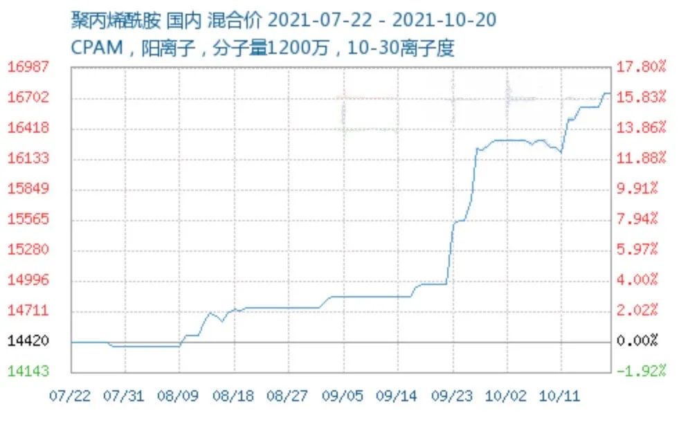 聚丙烯酰胺近期價(jià)格也出現(xiàn)了小幅上漲,其中,原料丙烯酸的持續(xù)上漲是主要影響因素,同時(shí)在"雙控"政策影響下,行業(yè)開工率持續(xù)降低,市場現(xiàn)貨丙烯酸供應(yīng)偏緊。