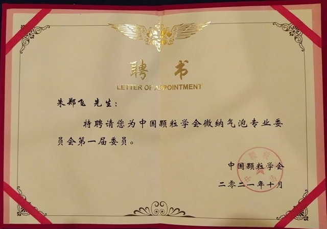 2021年10月22日-25日,微納氣泡委員會(huì)年會(huì)在中國常州召開。本次年會(huì)由中國顆粒學(xué)會(huì)主辦,江蘇如克環(huán)保設(shè)備有限公司(以下簡稱“如克環(huán)保”)應(yīng)邀參加,并提供年會(huì)贊助。會(huì)上,如克環(huán)保總的朱鄭飛總經(jīng)理被聘任為微納氣泡委員會(huì)第一屆委員。