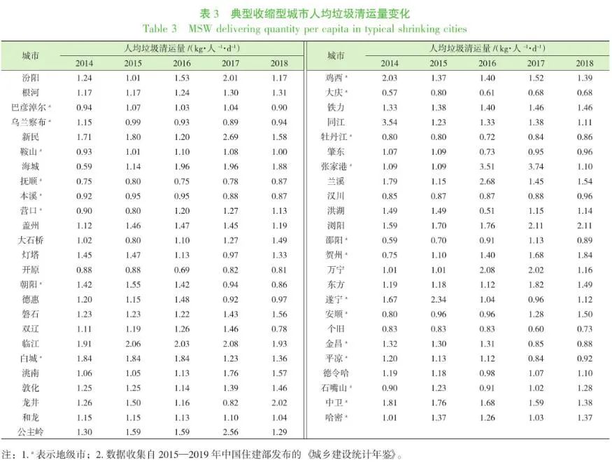 城市收縮是我國城鎮(zhèn)化發(fā)展面臨的重大趨勢,這一趨勢也會對生活垃圾的產(chǎn)生與處理產(chǎn)生重要影響。本研究首次對收縮型城市的生活垃圾管理問題進(jìn)行了分析,目前尚未有相關(guān)研究。