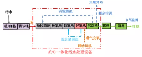 規(guī)模較小的鄉(xiāng)鎮(zhèn)污水處理廠(遠(yuǎn)期規(guī)模≤1000噸),以一體化設(shè)備為主,一體化設(shè)備采用A³O-MBBR工藝或MBR水處理工藝。