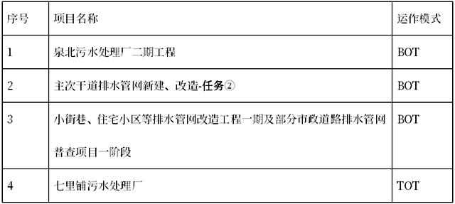 運營內(nèi)容為污水處理達標排放;污泥處置含水率達到規(guī)定要求(泉北污水處理廠二期污泥含水率低于60%;七里鋪污水處理廠出廠污泥含水率低于80%。最終以環(huán)評批復為準)并按協(xié)議約定送至政府方指定處理處置地點;同時對廠區(qū)內(nèi)的建構筑物進行定期維護,對廠區(qū)內(nèi)設備進行定期維護、大中修以及重置。