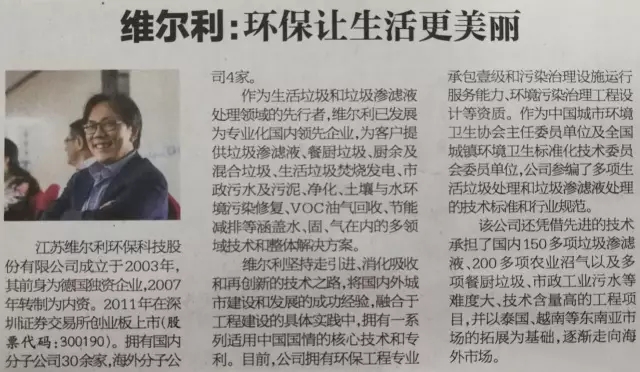 常州日報(bào)刊登維爾利報(bào)道