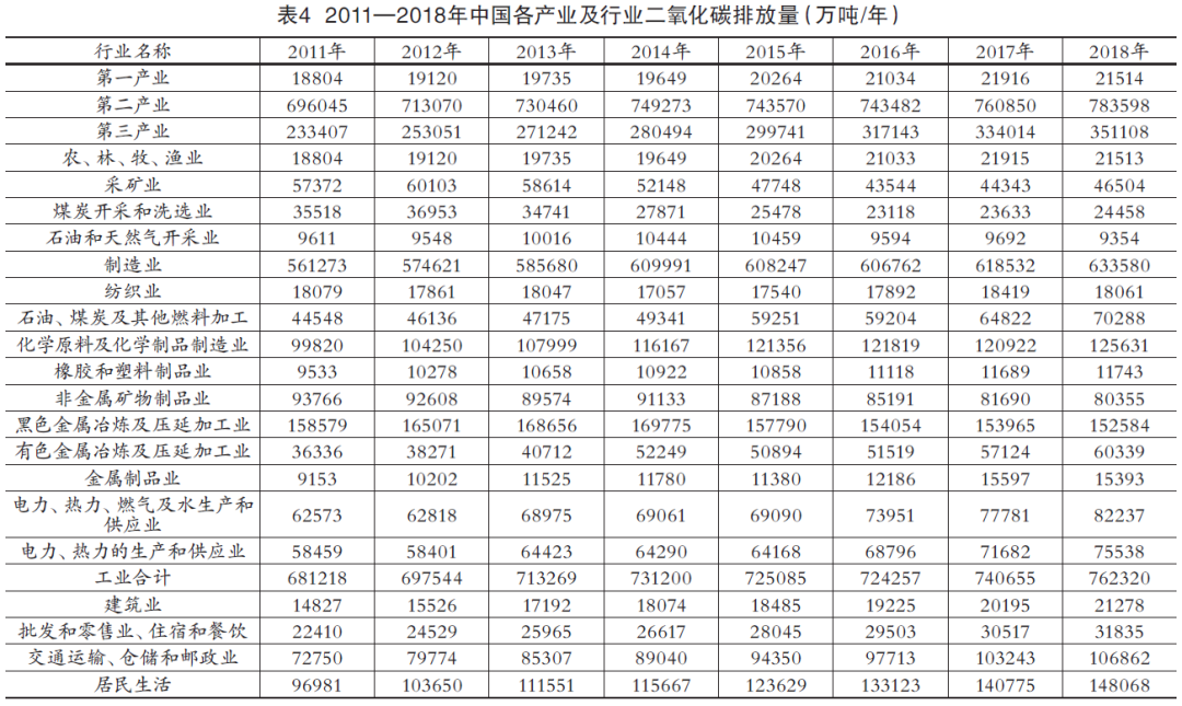 (二)中國各產(chǎn)業(yè)、行業(yè)二氧化碳排放量及測(cè)算方法