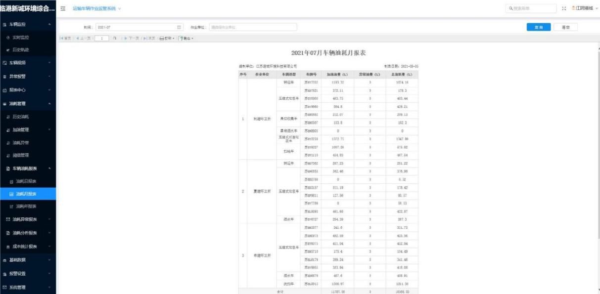 ▲車輛油耗報(bào)表