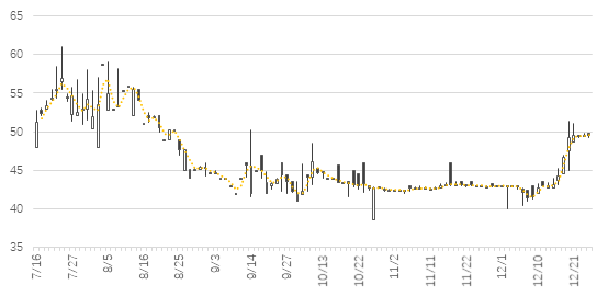 價(jià)格方面,截至12月24日,全國碳市場(chǎng)掛牌協(xié)議交易平均價(jià)格約45.9元/噸,最高價(jià)61.07元/噸,最低價(jià)38.5元/噸,絕大部分在40到60區(qū)間內(nèi)波動(dòng),總體呈現(xiàn)波動(dòng)降低的趨勢(shì),12月以來隨著履約期臨近,碳價(jià)開始逐步升高,從12月初的約42元/噸回升到50元/噸左右,12月21日大宗交易也出現(xiàn)了46.3元/噸的較高交易價(jià)格。氣候投融資試點(diǎn)工作將著力探索支持全國碳市場(chǎng)長期平穩(wěn)運(yùn)行的相應(yīng)手段,推動(dòng)碳市場(chǎng)提供更穩(wěn)定的長期價(jià)格信號(hào),促進(jìn)減排活動(dòng)的實(shí)施效率,同時(shí)也挖掘碳配額的價(jià)值,為企業(yè)減排活動(dòng)提供更全面的支持。