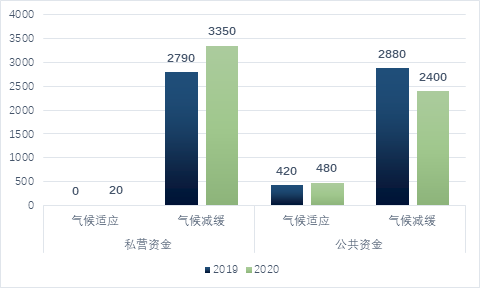 圖 3 2019-2020年全球公共與私營在氣候減緩與適應(yīng)的投資情況(單位:億美元)