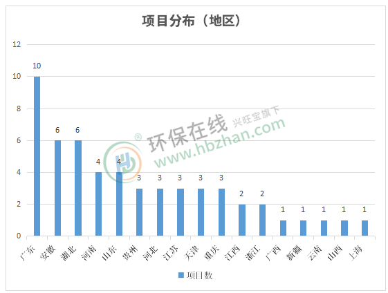 從地區(qū)分布看,2021年廣東、安徽、湖北三省項(xiàng)目進(jìn)展頻繁,廣東地區(qū)涉水項(xiàng)目(預(yù))中標(biāo)10個(gè),占據(jù)統(tǒng)計(jì)數(shù)據(jù)中近1/5的項(xiàng)目數(shù)量。但從廣東的這些項(xiàng)目來看,主要是對(duì)未達(dá)標(biāo)水體的再整治與水環(huán)境的再提升。