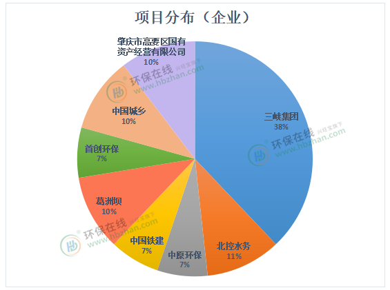 而從企業(yè)中標(biāo)情況來看(見上圖),中國(guó)城鄉(xiāng)、首創(chuàng)環(huán)保、葛洲壩、中國(guó)鐵建、中原環(huán)保、北控水務(wù)、肇慶市高要區(qū)國(guó)有資產(chǎn)經(jīng)營(yíng)有限公司的表現(xiàn)相當(dāng),分別中標(biāo)2~3個(gè)涉水項(xiàng)目。其中肇慶市高要區(qū)國(guó)有資產(chǎn)經(jīng)營(yíng)有限公司中標(biāo)的3大涉水項(xiàng)目,投資共41.87億元,項(xiàng)目實(shí)施集中于廣東省。三峽集團(tuán)表現(xiàn)突出,共計(jì)包攬11個(gè)涉水大項(xiàng)目,占比達(dá)到38%,投資額達(dá)217.35億元。