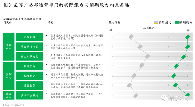 造成以上問(wèn)題的根本原因是管理沒(méi)有跟著業(yè)務(wù)走,各級(jí)主體的角色定位沒(méi)有跟著公司發(fā)展而變化,該總部管的沒(méi)有管好,不需總部管的管太多。領(lǐng)先實(shí)踐表明,隨著一些企業(yè)的業(yè)務(wù)多元發(fā)展,總部定位也需要逐步從運(yùn)營(yíng)管控往戰(zhàn)略運(yùn)營(yíng)管控轉(zhuǎn)型,做好“決策、管控、資源共享”等中心定位,但有些企業(yè)的管理變革顯然沒(méi)有緊隨其后(見(jiàn)圖3)。